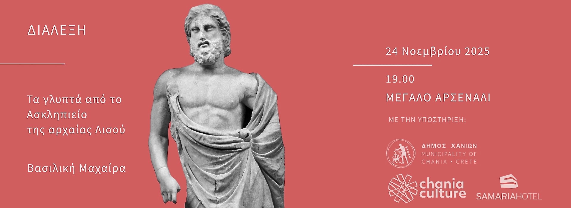 Η Ιστορική, Λαογραφική και Αρχαιολογική Εταιρεία Κρήτης σας προσκαλεί στη διάλεξη της Βασιλικής Μαχαίρα με θέμα «Τα γλυπτά από το […]
